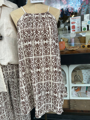 Mele Cotton Drawstring Dress - Brown & Natural Print