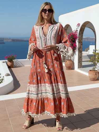 Mele Cotton Drawstring Dress - Brown & Natural Print