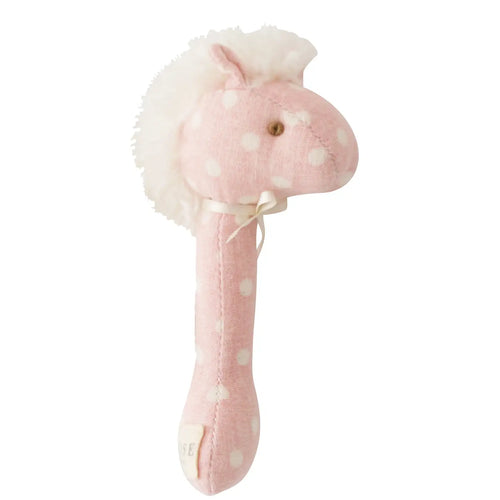 Horse Stick Rattle Pink & White Spot