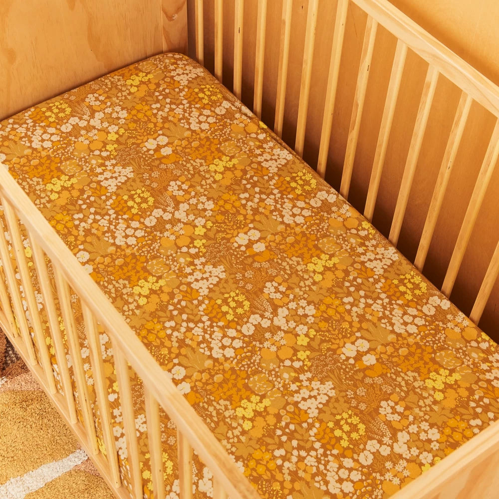 Pair our honey bunch print with the sunny daze floral blanket and flower power tufted rug for the retro floral nursery of your dreams