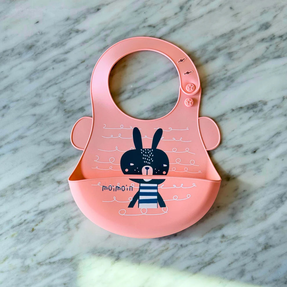 Stress Less, Spill Less, More Smiles with the Bowly Moly Silicone Bib With Cute Animal Prints!